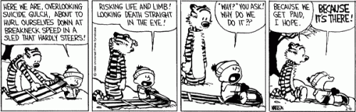 These moments of time weigh heavily on Calvin’s mind. Lost time steals opportunities to scratch off goals fulfilled on his long list. Oh, yes there is a list titled “Things to Do Before I Die” and reads as such:
